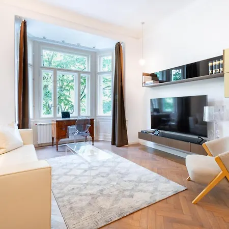 Pour profiter de vos vacances à Prague, séjournez au domicile de 95 m², qui se trouve à environ 2 km de la tour de Petřín et non loin du Pont Charles. Elegant Paris Ave Apartment With A Terrace est à 5 minutes à pied du centre de Prague. Cette propriété est situé à environ 25 minutes de marche du château de Prague.